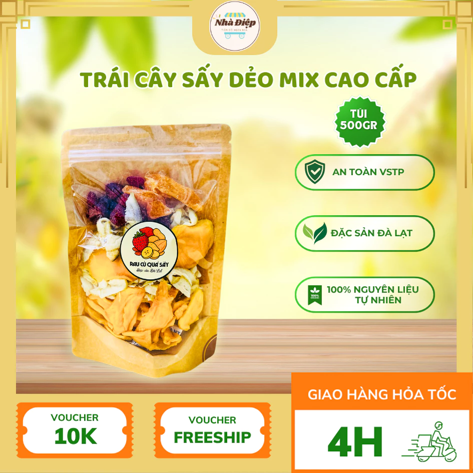 🔥 Trái Cây Sấy Dẻo Mix Chua Ngọt Thơm Ngon Đặc Sản Đà Lạt Tiệm Ngon Nhà Điệp Túi 500GR đang giảm giá!