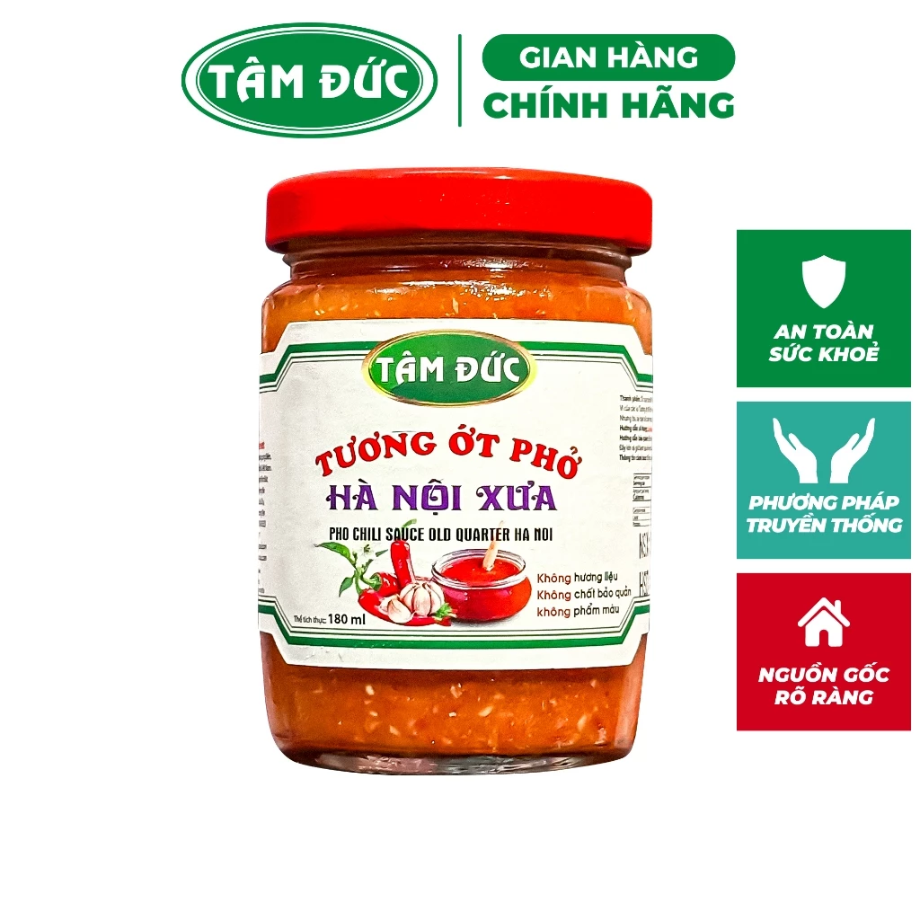 Bạn có thể mua Tâm Đức – Tương ớt nguyên chất vị phở Hà Nội xưa siêu ngon cay nồng lọ 180ml / 340ml tại đây.