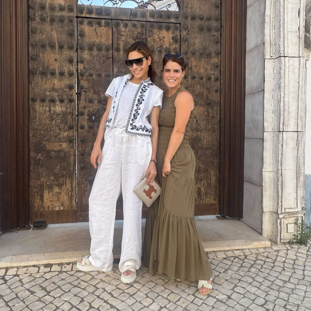 Hình ảnh mới nhất trên Instagram của Ayda cho thấy cuộc sống sôi động của gia đình trong kỳ nghỉ hè tại Bồ Đào Nha. Trong một bức ảnh, công chúa Eugenie và Ayda pose cùng nhau trên đường phố lát đá với trang phục mùa hè. Công chúa Eugenie chọn một chiếc váy dài màu kaki, trong khi Ayda diện một bộ trang phục linen màu trắng.