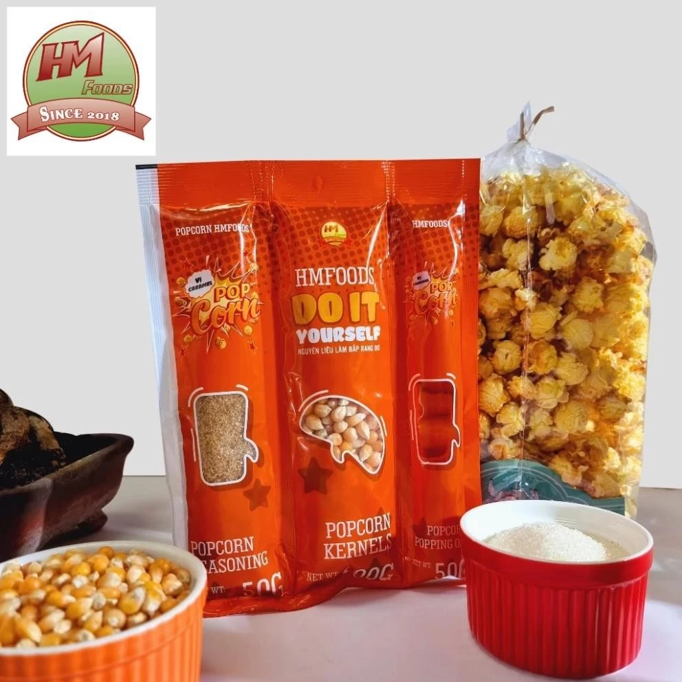 Nếu bạn muốn một giải pháp tiện lợi và dễ dàng hơn để làm bắp rang bơ tại nhà, hãy thử combo HMFOODS Popcorn All in One. Sản phẩm này là một bộ gồm đầy đủ các thành phần cần thiết để làm bắp rang bơ, từ bắp rang bơ chất lượng cao đến gia vị và hướng dẫn cách làm.
