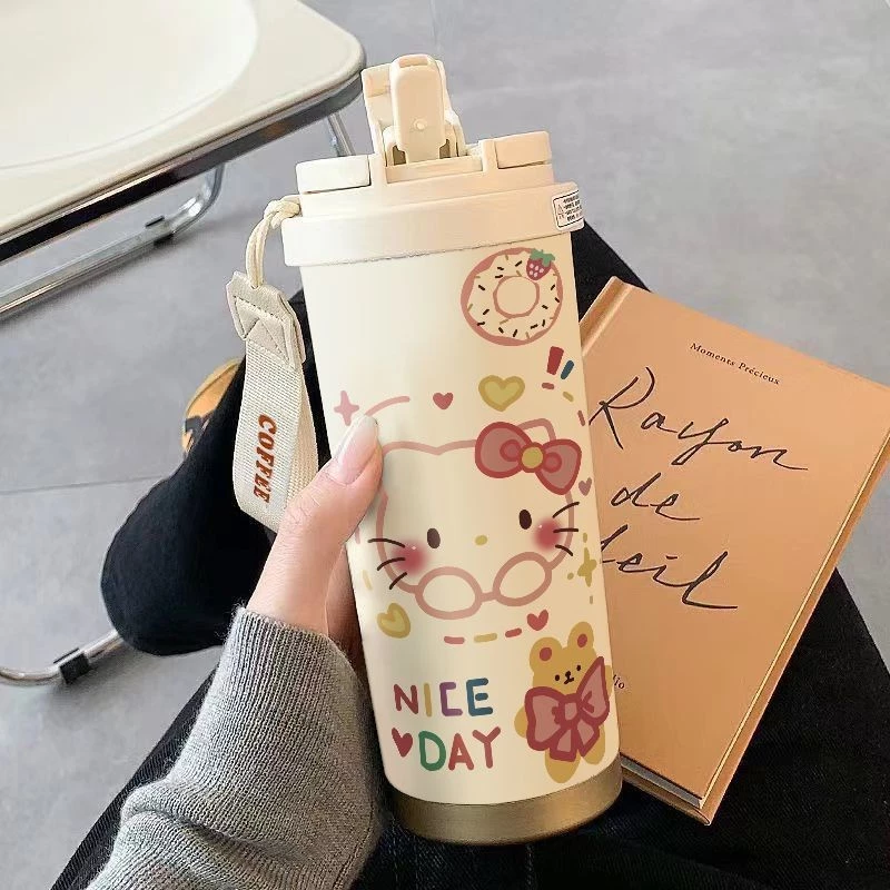 🔥 bình giữ nhiệt Hello Kitty nữ sinh viên ống hút thể thao dung tích lớn 500ml nước uống đôi ly giữ nhiệt đang giảm giá!