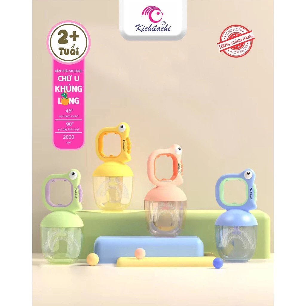 Bàn chải đánh răng silicon chữ U hình khủng long cho bé Kichilachi có nắp đậy – Lựa chọn tuyệt vời cho bé yêu