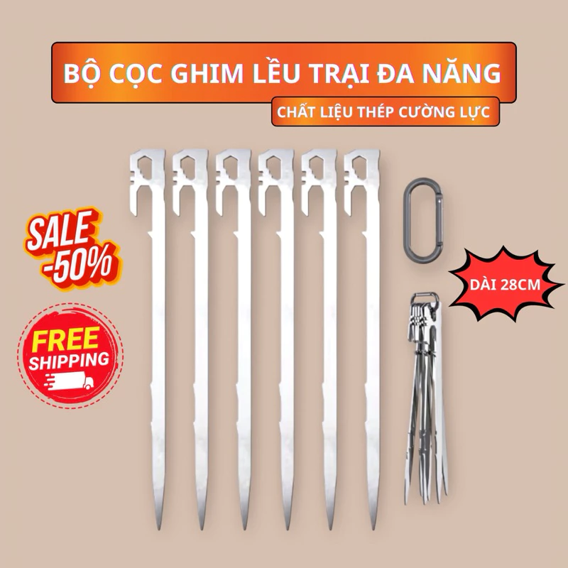 🔥 Bộ 6 Cọc Cắm Trại 28cm Cho Tăng Lều Bằng Thép Không Gỉ, Cọc Camping Cọc Lều Siêu Dài Chất Lượng Cao đang giảm giá!