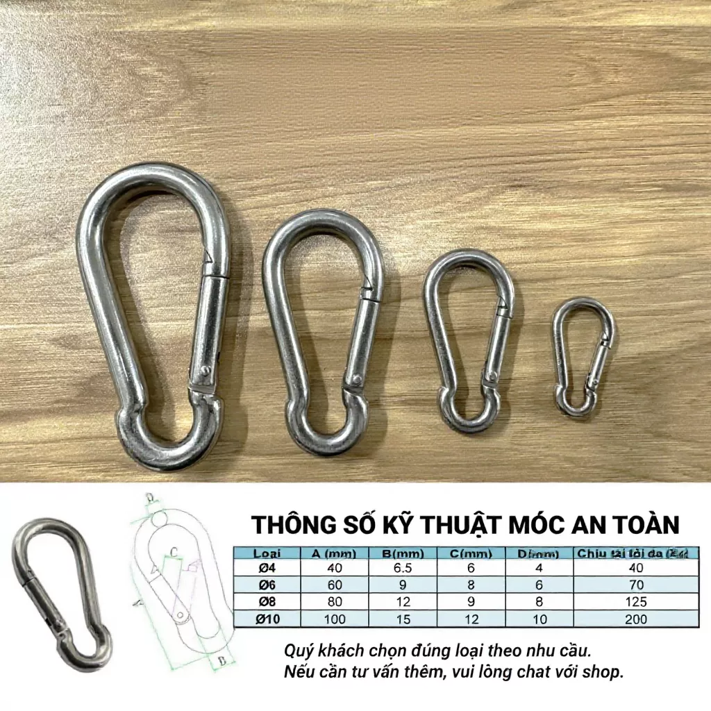 🔥 Móc Khóa An Toàn Carabiner INOX 304 Cao Cấp 4mm 6mm 8mm 10mm – LÊ HÀ VINA đang giảm giá!