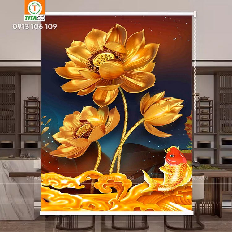 - Rèm cửa 3D hoa sen: mẫu rèm cửa này có thiết kế hoa sen đẹp mắt.