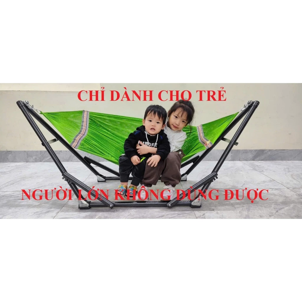 - Kích thước tiêu chuẩn: Võng xếp cho trẻ em thường có kích thước khoảng 120-150 cm chiều dài và 80-100 cm chiều rộng.