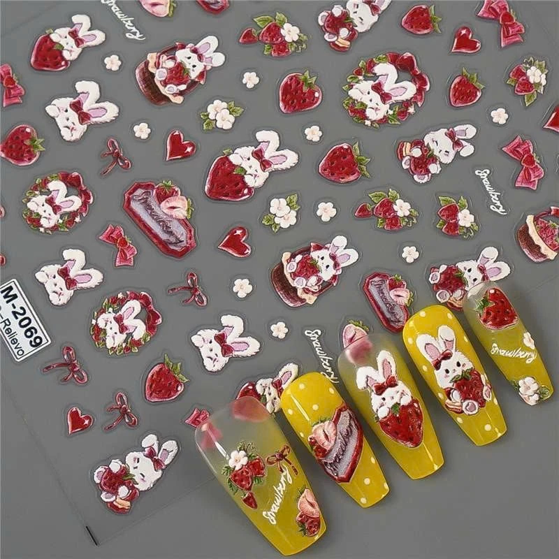 Lợi ích khi sử dụng Sticker dán móng thỏ dâu 5D lụa M-2069