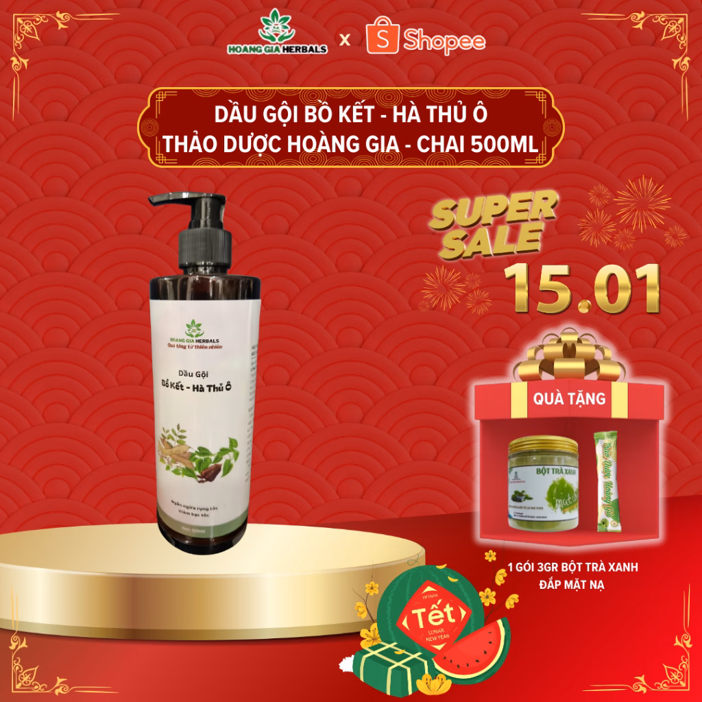 🔥 Dầu gội bồ kết – hà thủ ô giảm rụng tóc, dưỡng tóc đen mượt, sạch gàu Thảo dược Hoàng Gia 500ML đang giảm giá!