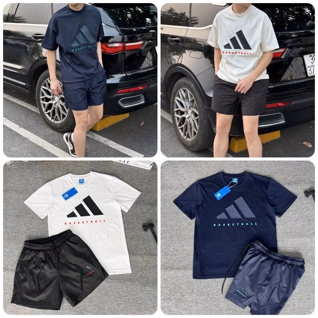 Bộ Quần Áo Nam A Đi Đét In LOGO Dập Cao Su Nổi CHỮ ĐỎ Phối quần gió cao cấp Siêu Chất – Bộ Cộc Hè Basketball Nam Nữ Chất