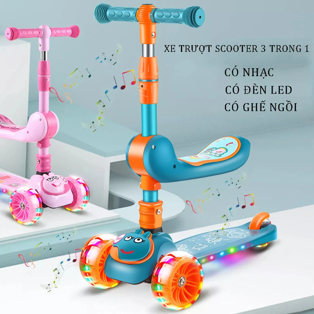 🔥 Xe trượt Scoter 3 bánh đa năng có đèn led phát sáng, có nhạc và ghế ngồi cho trẻ em – Xe thăng bằng có nhạc dành cho bé đang giảm giá!