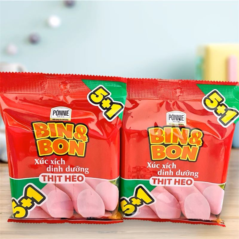 Một trong những sản phẩm xúc xích ăn liền đang nhận được nhiều sự quan tâm hiện nay là Xúc Xích Ăn Liền Bin&Bon hiệu PONNIE MASAN. Sản phẩm này được đóng gói trong bao bì tiện lợi, với mỗi gói gồm 5 chiếc xúc xích và tặng thêm 1 chiếc, tổng trọng lượng lên đến 180g.