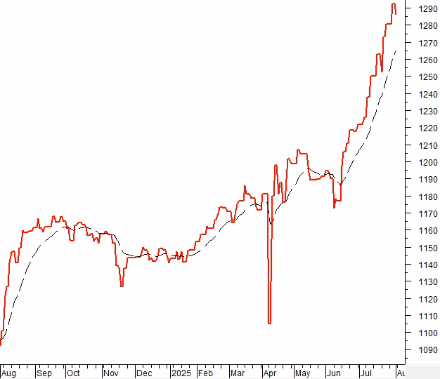 Về phân tích dòng tiền, chỉ báo Negative Volume Index của VN-Index đang nằm trên đường EMA20 ngày, cho thấy rủi ro sụt giảm bất ngờ có thể giảm bớt nếu trạng thái này tiếp tục. Tuy nhiên, khối ngoại tiếp tục bán ròng trong phiên giao dịch ngày 01/08/2025, và nếu xu hướng này duy trì, tình hình sẽ càng trở nên bi quan hơn.